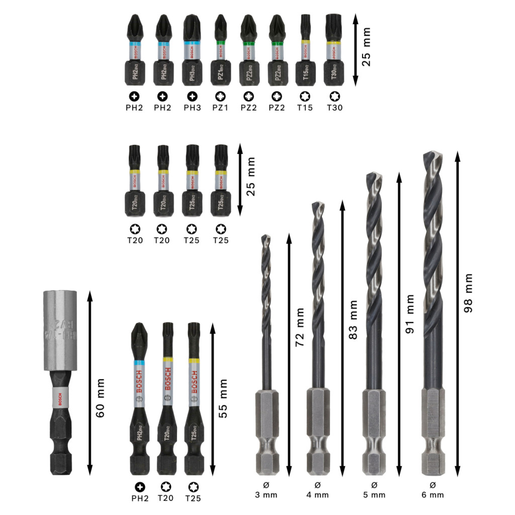 Bosch 2608521U84 PRO Impact csavarozó és IMPACT control fémfúró vegyes készlet, 20 részes