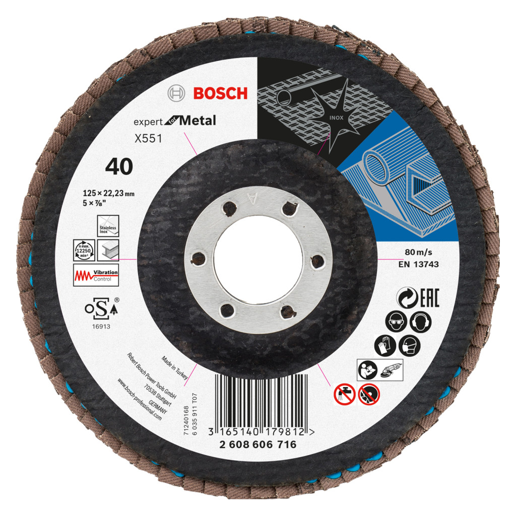 Bosch 2608606716 X551 Lamellástárcsa 125mm, P40, FÉM/INOX