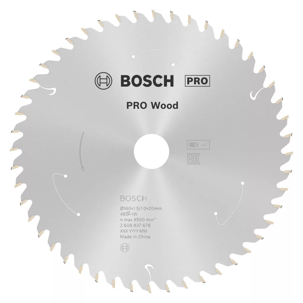 Bosch 2608837678 PRO Wood akkumlátoros körfűrészlap átm.160 x 1,5/1,0 x 20, Z=48