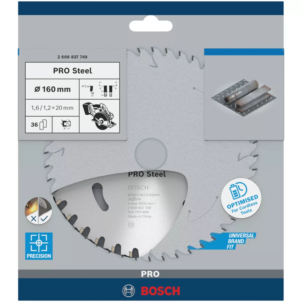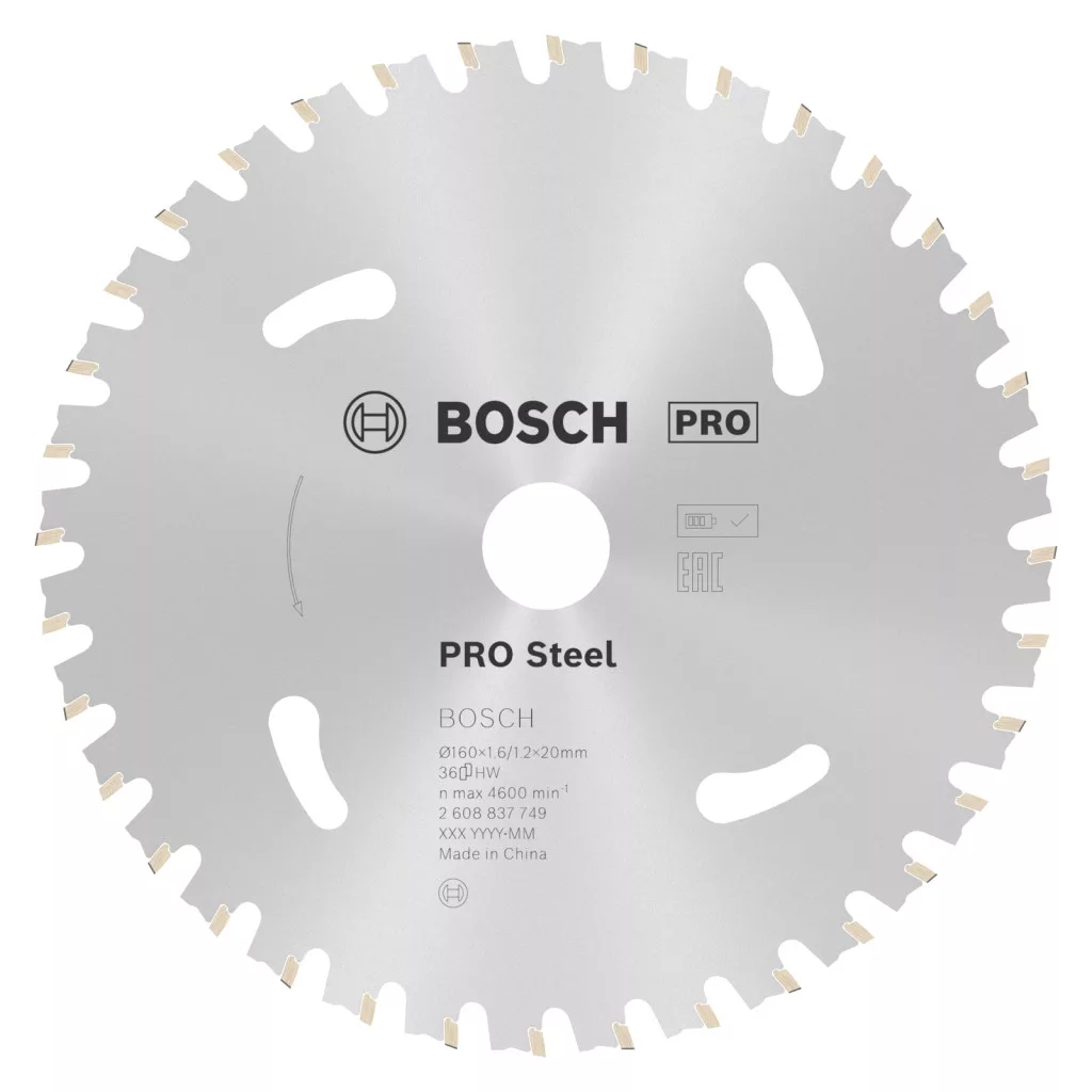 Bosch 2608837749 PRO Steel akkumlátoros körfűrészlap átm.160 x 1,6 / 1,2 x 20 mm, Z=36