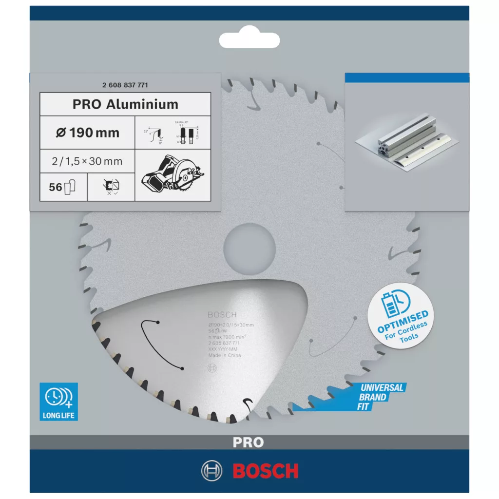 Bosch 2608837771 PRO Aluminium cordless körfűrészlap, 190 x 2 x 30 mm átm.190 x 1,0/1,5 x 30 mm, Z=56