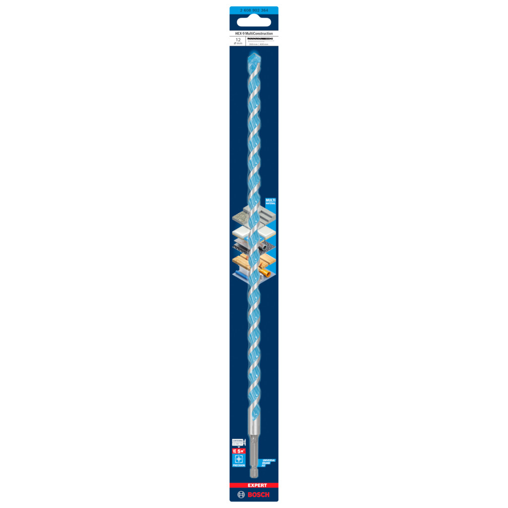 Bosch 2608902364 EXPERT HEX-9 Multi Construction fúrószár, 12x350x400 átm.12x350x400, 1/4"