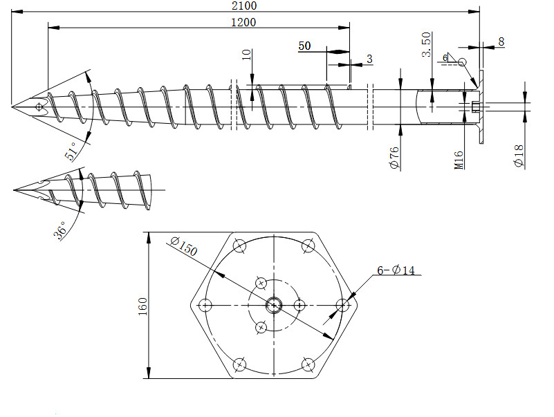 DRT M 76x2100x3,5-M16 Talajcsavar