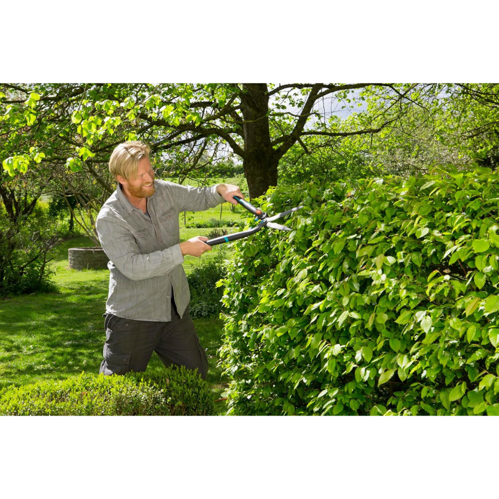 A GARDENA 2in1 EnergyCut sövénynyíró olló ideális a gyors vágásokhoz, és extra teljesítményt nyújt, amikor csak szükséged van rá a sövény vagy bokrok vágása közben. Egy gombnyomással aktiválhatod a nagyobb erőt. Amint bekapcsol, a sövénynyíró nyitási szöge megnő, így 2,5-szer nagyobb teljesítményre képes. Ez lehetővé teszi, hogy a vastagabb ágakat kis erőfeszítéssel, pillanatok alatt levágd. Ha a kiegészítő fokozat nincs bekapcsolva, az olló ideális a vékony ágak gyors vágására is. A sövénynyíró robusztus, mégis könnyű anyagokból készült, így kis súlya van, ami azt jelenti, hogy hosszabb ideig vághatsz fáradás nélkül. Nagy hangsúlyt fektettek a kezelhetőségre és a munkakomfortra is: Az EnergyCut ergonomikusan kialakított, kerek, szimmetrikus ErgoTec nyelekkel rendelkezik, amelyek jól kézbe illenek. A beépített puha ütköző elnyeli az ütéseket és védi a csuklót. Az optimális munkaszögnek köszönhetően a kezed vágás közben mindig biztonságos munkapozícióban van. A praktikus extra fokozat mellett maguk a pengék is lenyűgözőek: Tapadásmentes acélból készülnek, és különösen tartósak. A kések hullámos élezése miatt nagyobb felületek vágásakor is nagy hatékonyság érhető el, mivel a levelek és gallyak nem csúsznak ki, hanem a vágási területen maradnak. A beépített ágvágóval könnyedén levághatod a vastag ágakat. A 2in1 EnergyCut egy minőségi termék, amelyre a GARDENA 25 év szavatosságot vállal. Fejezd ki magad pontosan. Könnyen használható, hatékony és tartós vágószerszámok kreatív kertészek számára.