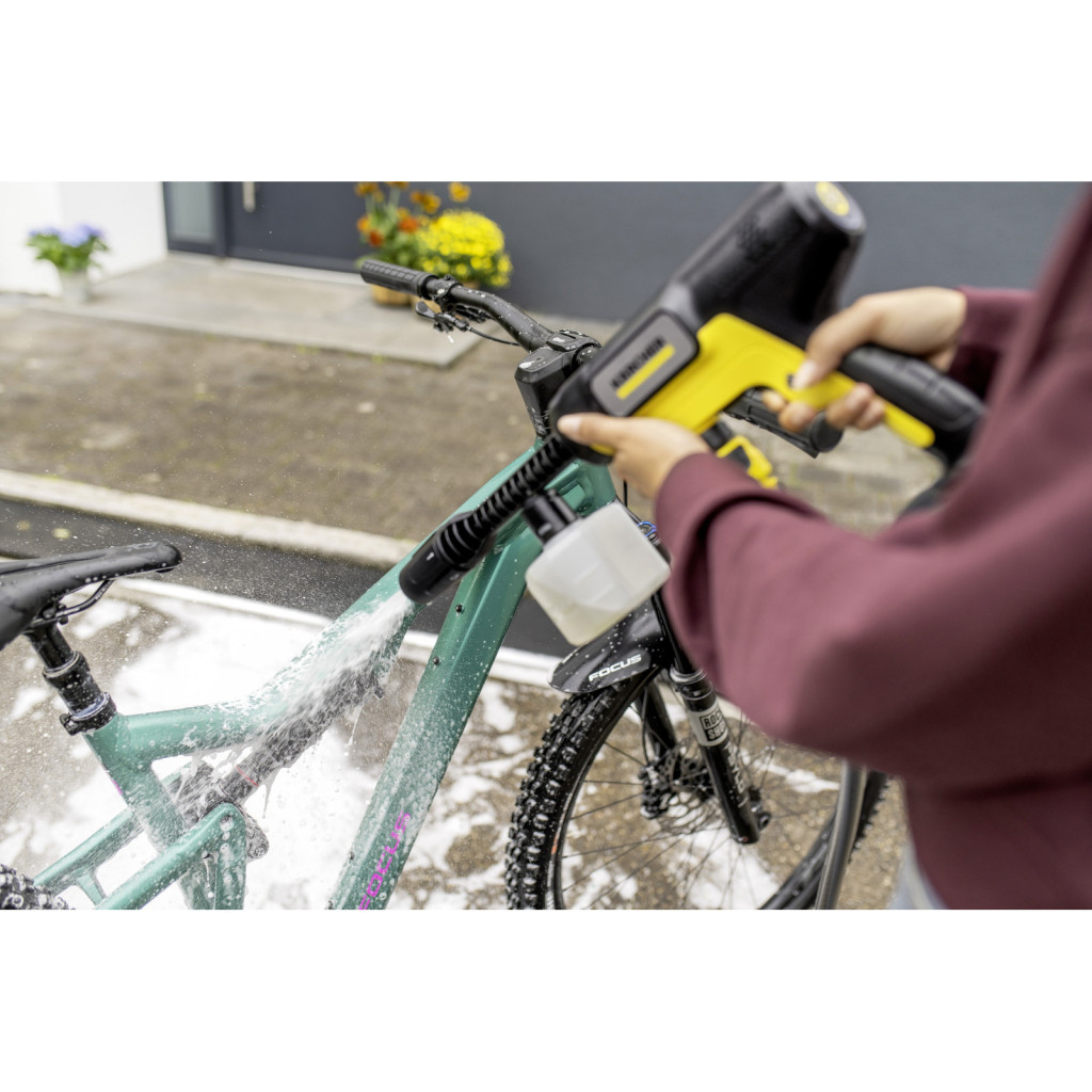 A hatékony Kärcher fúvókatechnológiának és az 5 az 1-ben Multi Jetnek köszönhetően a nyomású mosó kíméletesen tisztít és vizet takarít meg. A szennyeződéseket rendkívül hatékonyan távolítja el. Ideális választás a kerékpárok érzékeny alkatrészeinek – például csapágyak, tömítések vagy kerékagyak – védelmére. Megbízható és precíz tisztítás még a nehezen elérhető helyeken is.
