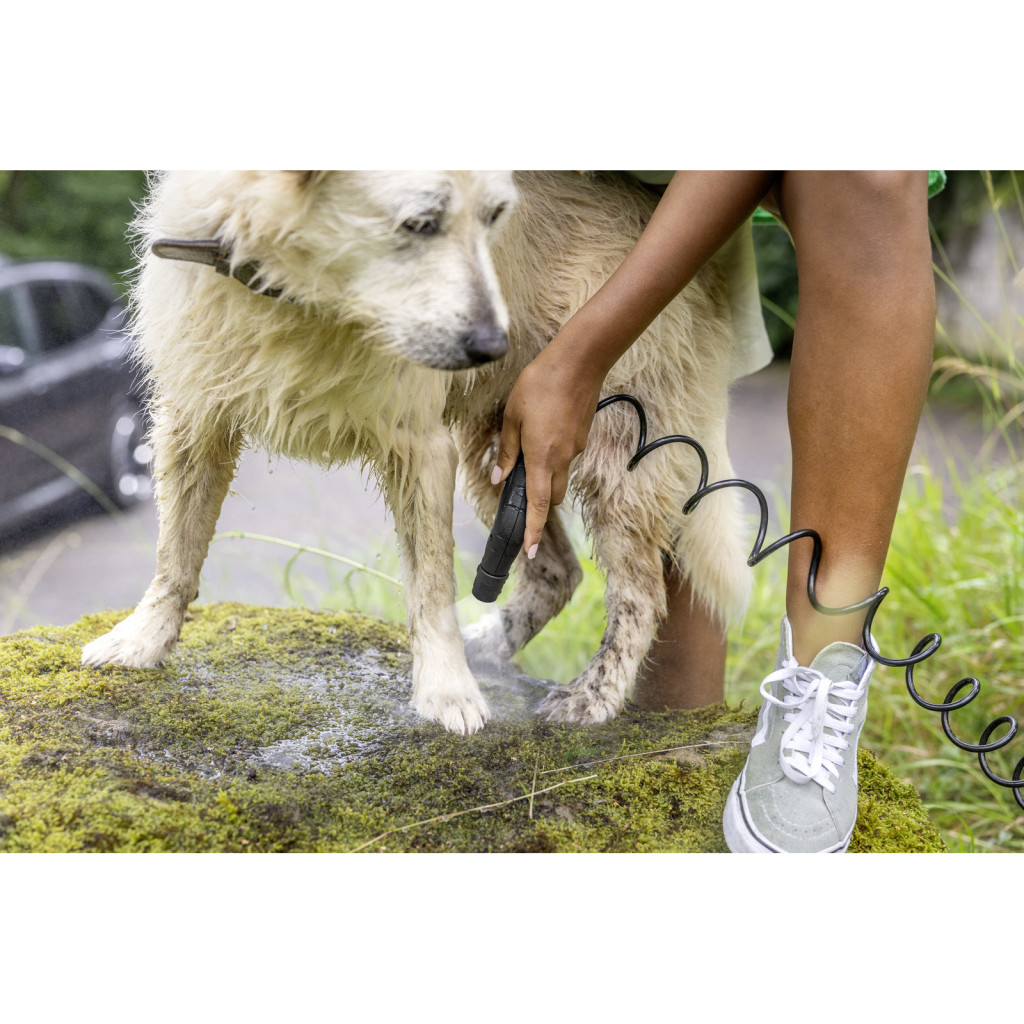 Gyorsan és egyszerűen beállítható és használható. Egyszerűen töltse fel vízzel, és máris használható. Az indítópisztoly reteszelő funkcióval rendelkezik a könnyed, megállás nélküli permetezés érdekében. A 2,8 m hosszú spiráltömlő nagy munkasugarat kínál.