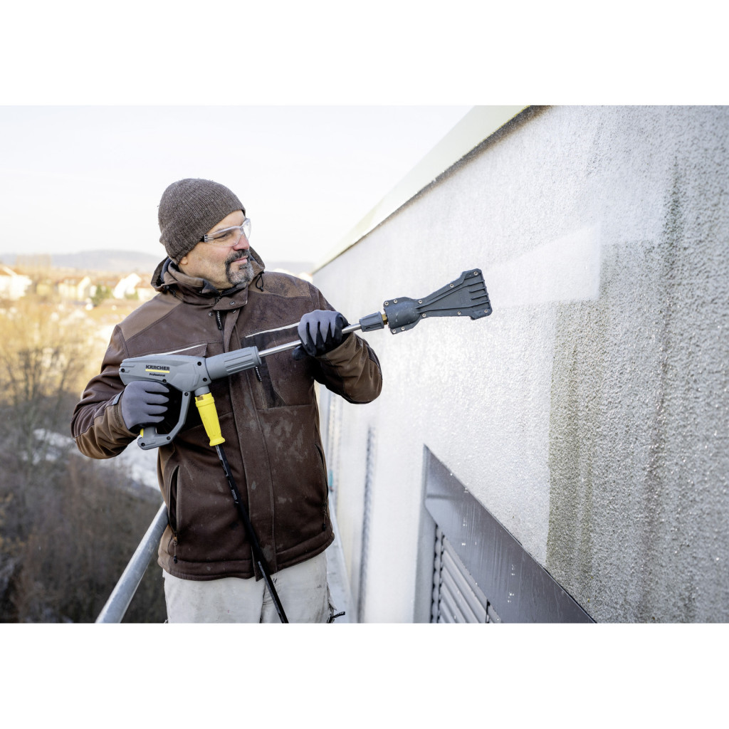 eco!Booster 50%-kal nagyobb területteljesítménnyel, mint a Kärcher power fúvókánál, hideg- és melegvizes magasnyomású tisztítókhoz (fúvókaméret 033); ideális érzékeny felületekhez. Az eco!Booster a Kärcher power fúvókáknál 50 százalékkal nagyobb területteljesítményével nyűgöz le. A megnövelt sugárszélesség nagyobb hatékonyságot eredményez, ami alacsonyabb energia- és vízfogyasztással jár. Az olyan kényes felületek, mint a vakolt homlokzatok vagy a fából készült falak kíméletesen tisztíthatók. A booster alkalmas a Kärcher hideg- és melegvizes magasnyomású (85 °C-ig) tisztítógépeihez, kompatibilis az EASY!Lock rendszerrel és 033-as fúvókamérettel rendelkezik. A forradalmi fúvókakoncepció levegőt szív be a vízsugár irányításához. Az, hogy rövidebb idő alatt első osztályú tisztítási eredmény érhető el, különösen fontos az olyan ágazatokban, mint az építőipar vagy a járműtisztítás.