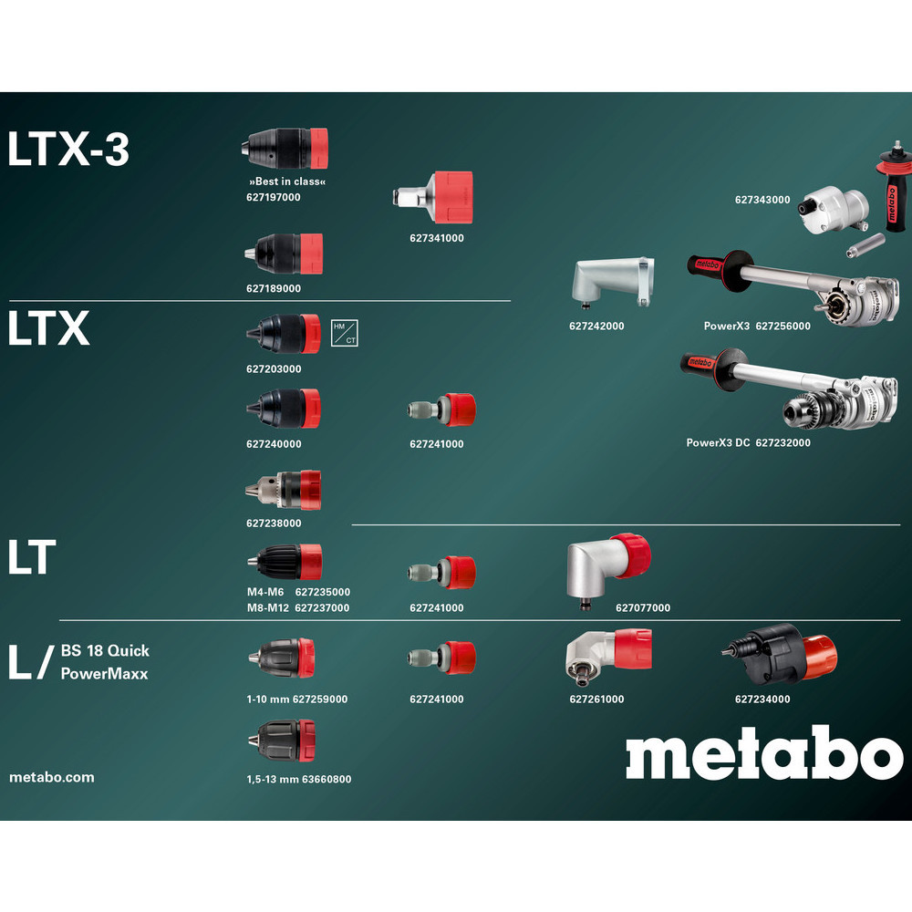 • Metabo QuickPlus rendszer: fúrótokmányok, bittartók, sarokadapterek gyors cseréje a flexibilis munkavégzés érdekében maximális igénybevétel esetén