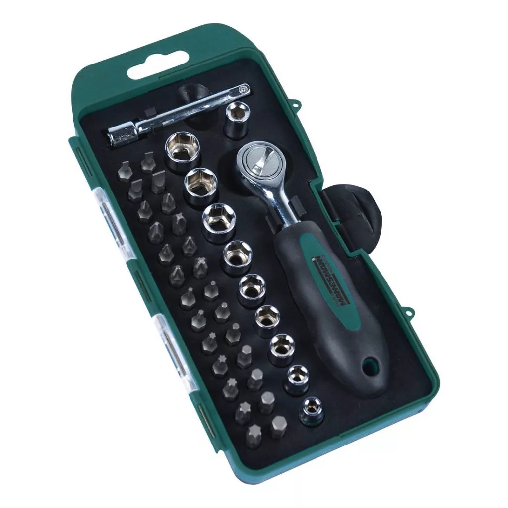 MAN-29891 Kézi dugókulcs és bitfej készlet 1/4” hajtószárral és adapterrel, 38 részes
