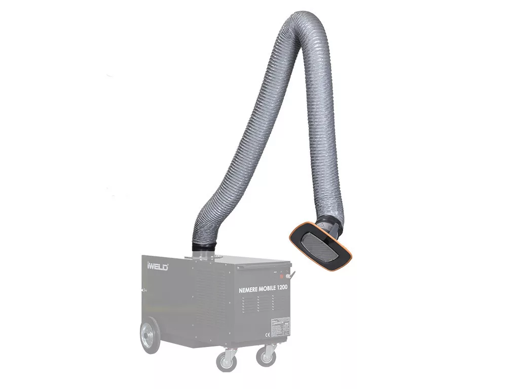 Flexibilis, könnyedén minden irányba mozgatható, a megfelelő pozícióban stabilan rögzíthető cső. Méretek: 160 mm belső átmérő, 3 m hossz. A végén kialakított tölcsér segíti a füst és por elszívást. Egyszerűen csatlakoztatható az IWELD Nemere Mobile hegesztési füst és por elszívó géphez.
