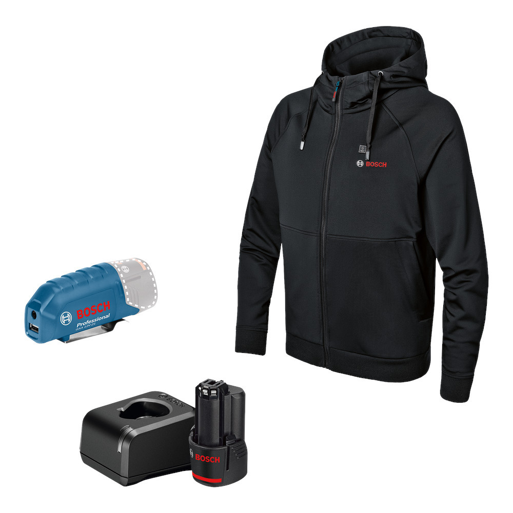 Bosch GHH12+18VXA Fűthető kapucnis pulóver +adapterrel 12V-18V 12V/2,0Ah +GAL12V-20, XL-es 06188000GE