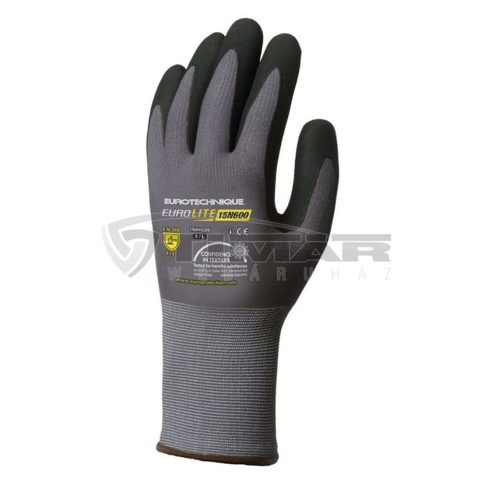 Munkavédelmi Kesztyű Eurolite 15N600 fekete nitril mártott 1NIHG09 9/L